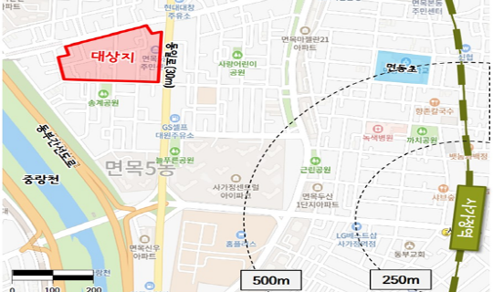 ¸ÕÀú Áß¶û±¸ ¡®¸é¸ñµ¿ 174-1Àϴ롯´Â ÁÖº¯ÀÌ ÁÖÅð³¹ß»ç¾÷À¸·Î µÑ·¯½Î¿© ÀÖ¾î ÀÎÁ¢Áö¿ª°ú ¿¬°èÇØ ÁÖ°Åȯ°æ°³¼± ¹× ±â¹Ý½Ã¼³ È®ÃæÀÌ °¡´ÉÇÒ °ÍÀ¸·Î º¸ÀδÙ. Èĺ¸Áö ¼±Á¤À» ÅëÇÏ¿© Àα٠°³¹ß»ç¾÷°ú ÇÔ²² ÁÖ°Åȯ°æ°³¼±ÀÇ ½Ã³ÊÁöÈ¿°ú°¡ âÃâµÉ °ÍÀ̶õ  °Ô ½ÃÀÇ ¼³¸íÀÌ´Ù.