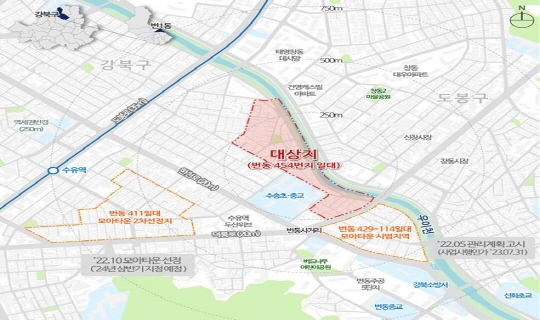 ¹øµ¿ 411¹øÁö¿Í ¼öÀ¯µ¿ 52-1¹øÁö ÀÏ´ë´Â °­ºÏ±¸ Áß½ÉÁöÀÎ ¼öÀ¯»ç°Å¸®¿¡ ÀÎÁ¢ÇÏ°í ½ÅÃࡤ±¸Ãà °Ç¹°ÀÌ È¥ÀçµÅ ±×°£ ±¤¿ªÀû °³¹ßÀÌ ¾î·Á¿ü´Ù. ½Ã´Â ¸ð¾ÆÅ¸¿î ÁöÁ¤À¸·Î »ç¾÷À» Ȱ¼ºÈ­Çϰí Á¤ºñ±â¹Ý½Ã¼³°ú °øµ¿ÀÌ¿ë½Ã¼³ µîÀ» È®ÃæÇØ ÄèÀûÇÑ ÁְŠȯ°æÀ» Á¶¼ºÇÒ °èȹÀÌ´Ù.