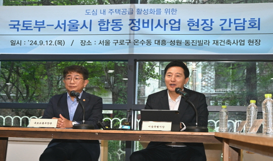 ±¹ÅäºÎ ¹Ú»ó¿ì Àå°ü°ú ¿À¼¼ÈÆ ¼¿ï½ÃÀåÀÌ ¼¿ïÀÇ Àç°ÇÃà»ç¾÷ ÇöÀåÀ» ¹æ¹®ÇØ ¡®½Å¼ÓÇÑ Á¤ºñ»ç¾÷ ÃßÁø¡¯ ÀÇÁö¸¦ ÀçÈ®ÀÎÇß´Ù. ¹«¾ùº¸´Ù ¡®8.8ÁÖÅðø±Þ´ëÃ¥¡¯ÀÌ Â÷Áú ¾øÀÌ ÁøÇàµÉ ¼ö ÀÖµµ·Ï ¡®Àç°ÇÃࡤÀç°³¹ß ÃËÁø Ư·Ê¹ý¡¯ ±¹È¸ Åë°ú¸¦ Ã˱¸Çß´Ù.