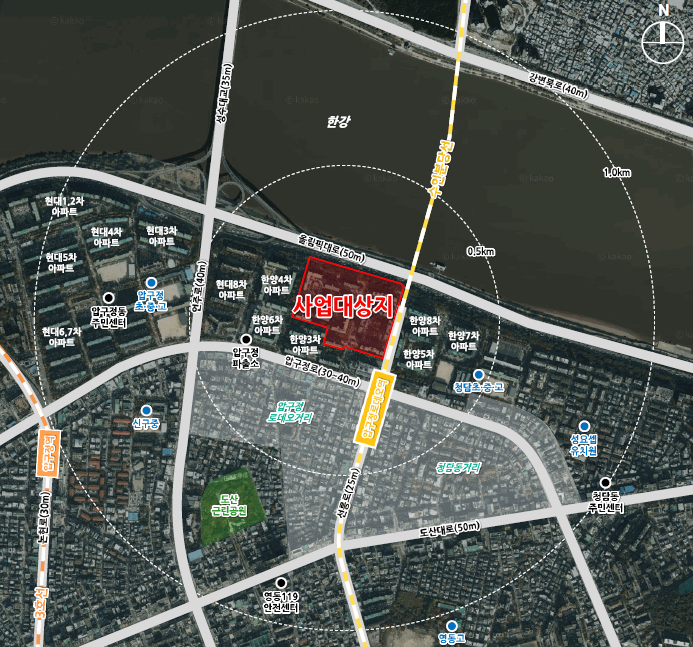¼­¿ï °­³²±¸ ¾Ð±¸Á¤5±¸¿ªÀÌ ÃÖ°í 50Ãþ ÃÑ 1401¼¼´ëÀÇ ´ë±Ô¸ð ¾ÆÆÄÆ®´ÜÁö·Î Àçź»ýÇÑ´Ù. Á¤ºñ°èȹȮÁ¤¿¡ µû¸¥ °ÍÀ¸·Î ÇѰ­º¯ ÀÔüÁ¶¸ÁÀ» ǰÀº ¼öº¯Æ¯È­´ÜÁö·Î Á¶¼ºµÉ Àü¸ÁÀÌ´Ù.