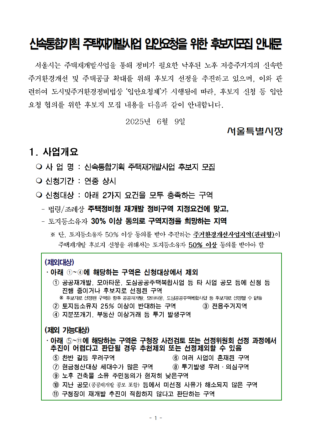 ½Å¼ÓÅëÇÕ±âȹ ÁÖÅÃÀç°³¹ß»ç¾÷ ÀԾȿäûÀ» À§ÇÑ Èĺ¸Áö¸ðÁý ¾È³»¹®
