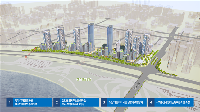 ¼­¿ï ÇѰ­º¯ ÃÖ°í ÀÔÁö·Î ¼Õ²ÅÈ÷´Â ¼­Ãʱ¸ ¡®½Å¹ÝÆ÷2Â÷ ¾ÆÆÄÆ®¡¯°¡ ÃÖ°í 50Ãþ 2050¼¼´ë ´ë´ÜÁö·Î Àçź»ýÀ» ¿¹°íÇß´Ù. ÀÌ´Â ½Å¼ÓÅëÇÕ±âȹ È®Á¤¿¡ µû¸¥ °ÍÀ¸·Î ÇѰ­º¯ ´ëÇ¥ ÁÖ°Å´ÜÁö·Î¼­ »ó¡Àû °æ°ü ¹× ³ìÁö¡¤º¸ÇàÀÌ ¾î¿ì·¯Áø ¼öº¯ Ưȭ´ÜÁö·Î Á¶¼ºÇÑ´Ù´Â °èȹÀÌ´Ù.